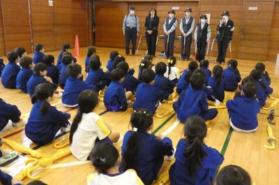真岡警察署、市役所の方々、そして朝の登校を見守ってくださっている交通指導員さんに来ていただきました。