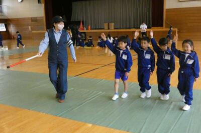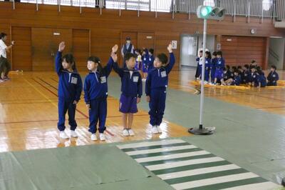 模擬道路を設け、安全な歩行や道路横断を実際にやってみました。
