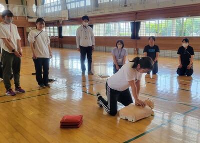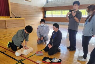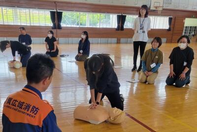 昨日の放課後、消防署から講師をお招きし、職員研修の一環で救急救命の勉強会を行いました。
