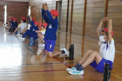始めに「体ほぐし運動」を行って、心と体をウォームアップ。互いの体調を知り、整えます。