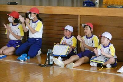 出番を待つ1年生は、友達に熱い声援を送っていました。