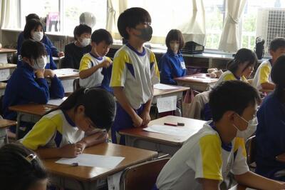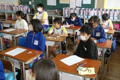 授業の最後の「振り返り」の時間には、先生が、「分かったことやできるようになったことを書きましょう」と子供たちに言いました。子供たちは、