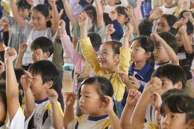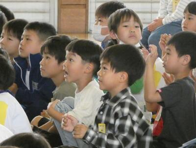 リズムよく手を叩きながら、みんなで「゛」にある友達の名前を唱えました。