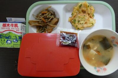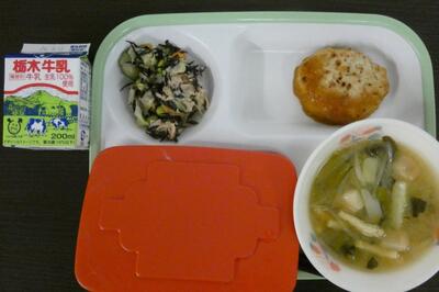 今日の給食は、さばのしょうが煮、ごま酢あえ、いものこ汁、ごはん、牛乳でした。エネルギー639kcal、たんぱく質23.0g、脂質22.7gでした。ごちそうさまでした。