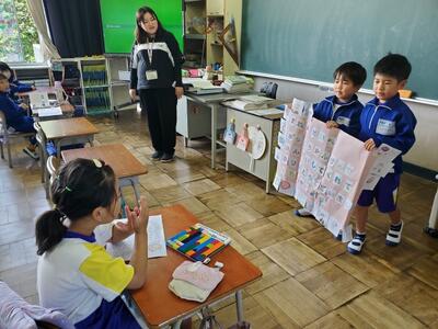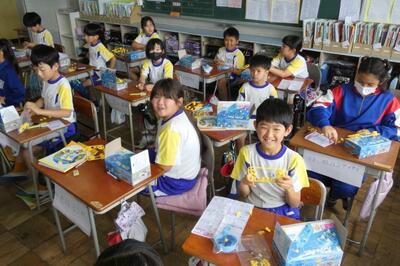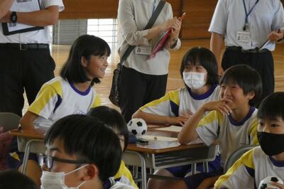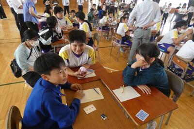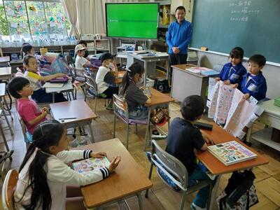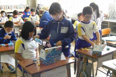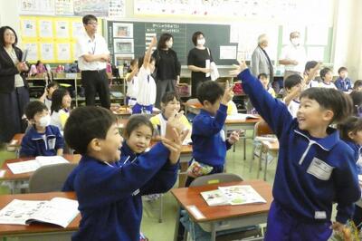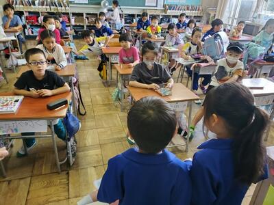 先生がプリントを配ると、「はい、どうぞ。」「ありがとう。」という声が聞こえてきます。先生がそこを逃さずに「スバラシイ!」と褒めると、お礼の声がどんどん教室中に広がっていきました。スバラシイ!