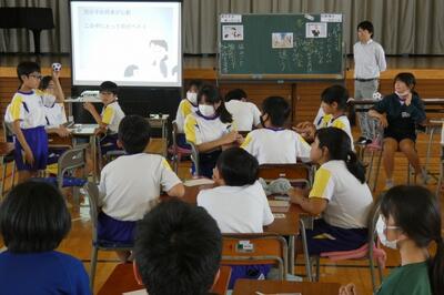 6年生の教室で租税教室が行われています。今日行われた6年3組の様子をご覧ください。