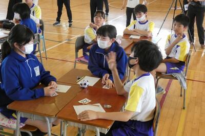 友達の意見に耳を傾けながら、児童は気付いたことをノートにメモしていました。