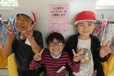 本校は来年、創立50周年を迎えます。それに先立って、創立50周年記念実行委員会の皆さんが、子供たちから公式マスコットキャラクターを募っています。応募〆切は5/8(水)とのことです。