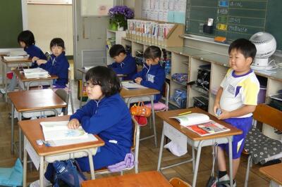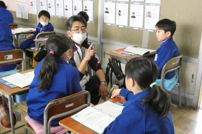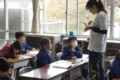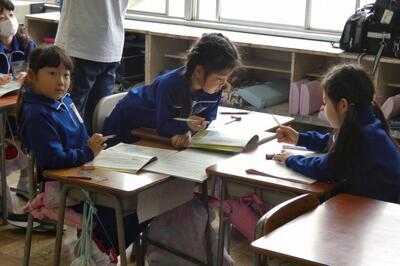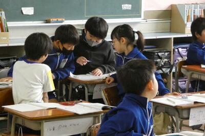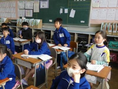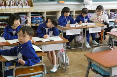 先生が「○○さんなら、ここをどのように読みますか?」と尋ねると、児童が「ちょっとゆっくりめに読みます。」「少し小さい声で読みます。」と答える場面がありました。