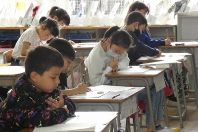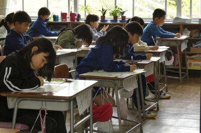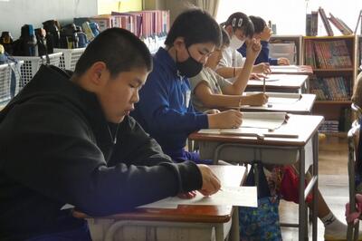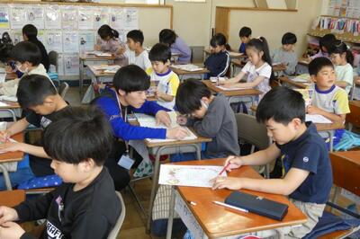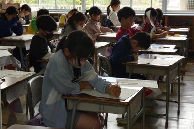 同じ時間に3~5年生も真岡市や栃木県の学力テストに挑戦しました。