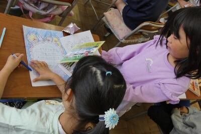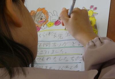3月に本校を去った職員に、感謝のお手紙を書いていました。