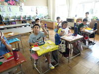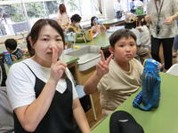 教室では、夏休みの思い出等をわくわくした表情で話す子供たちの姿が