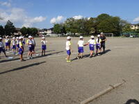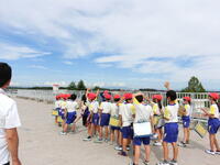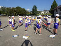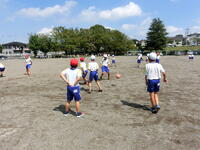 3年生はバトンの受け渡しの練習です。歩きながらの受け渡しはなかなか難しいようで、前の人を追い抜かさないように、離れすぎないように、声を掛け合いながら頑張っていました。
