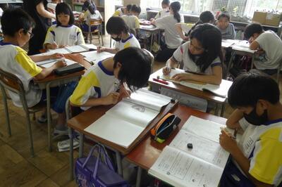 大事なところを確認した後、3人グループになってたくさん問題を解いて特訓しました。