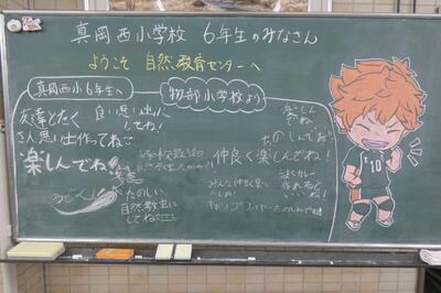 自然教育センターに着いて目に入ったのは、嬉しいメッセージボード。物部小学校の皆さん、ありがとうございます。