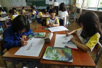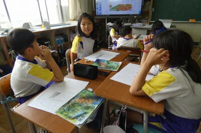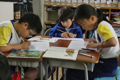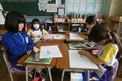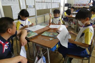 物語「ワニのおじいさんのたから物」をみんなで声に出して読んでから、登場人物の言動や気持ちなどが表れている文章を基に、登場人物の性格や人柄を考えました。