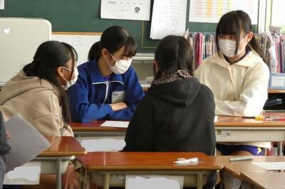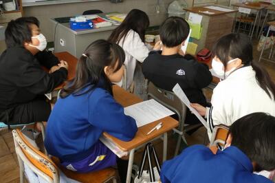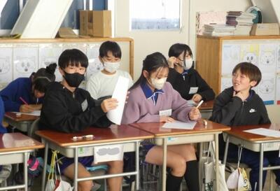 「スマイル会議」とは、事例をもとにいじめの原因・背景や防止について話し合い、いじめ問題への理解を深める活動です。この時間は、SNSトラブルの事例をもとに「何が原因か?」「どうすればよかったのか?」を考え、みんなで意見を出し合いました。