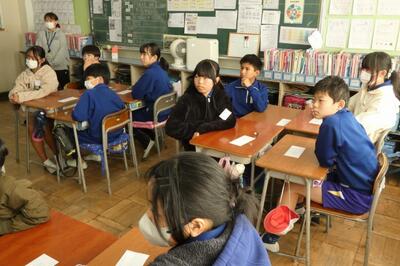 学級担任が自分の経験を子供たちに語りました。子供たちは真剣に聞き入っていました。