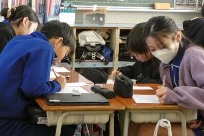 授業を振り返りながら、感想やこれからのめあてを記す子供たち。