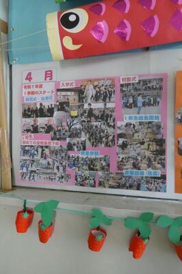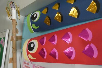 この鯉のぼりは、今年赴任した図工の教員が作ってくれました。鮮やかな色の鯉もいいですが、ポールの先の「矢車」の手の込みようは驚きです。たくさんの子供たちに見てほしいです。