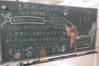 センターに着くと、玄関のウェルカムボードがこのとおり!長沼小の皆さん、ありがとうございます。