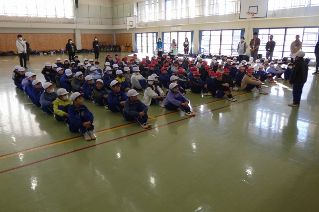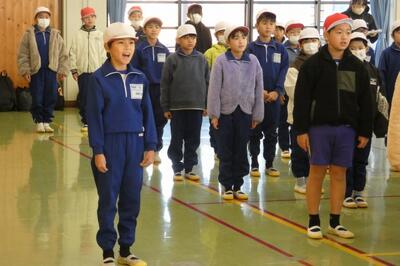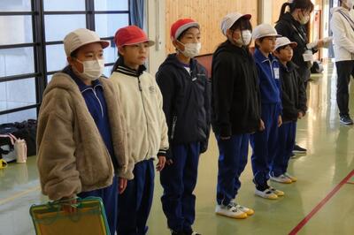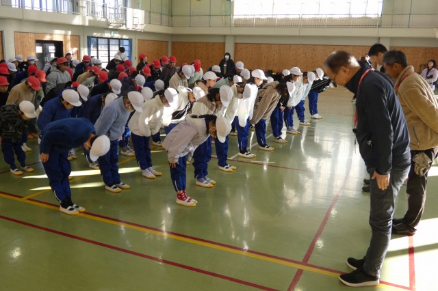 「よろしくお願いします!!」代表児童の後に続いて、センターの先生方に元気にあいさつしました。