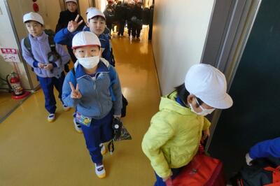 「こんにちは!よろしくお願いします。」と子供たち。玄関でセンター職員が温かく迎えてくださいました。