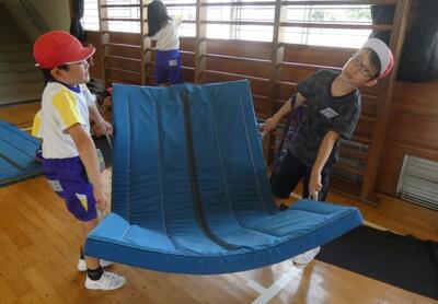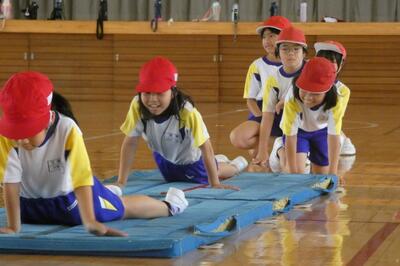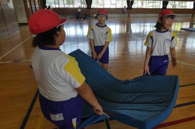 3年2組の体育科の授業におジャマしました。体育館でマット運動です。