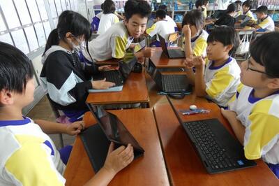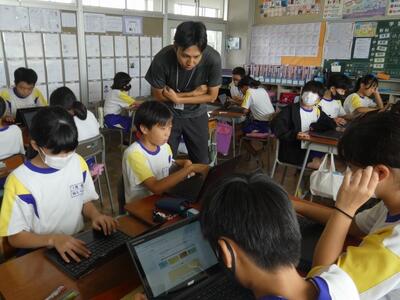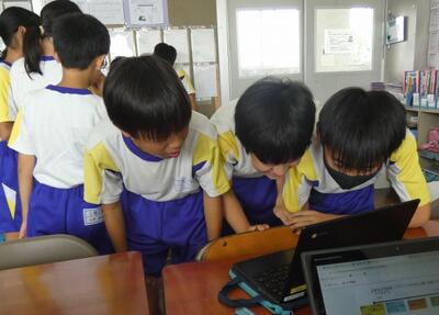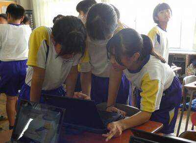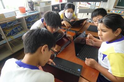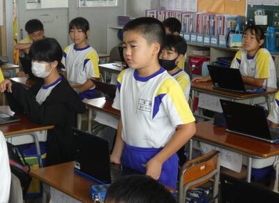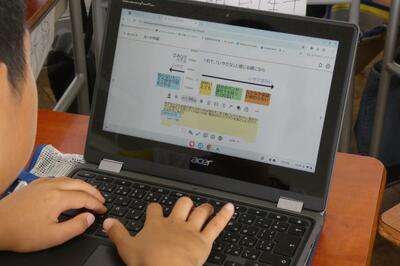 ・・・・子供たちは、タブレット端末上に自分の考えを書いていました。