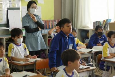 始めに、物語「世界でいちばんやかましい音」の今日の場面を、「大きな声で、正しく、はっきりと」に注意しながら、交替で読み合いました。