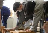 4年2組の図画工作の時間「のこぎりギコギコ」におジャマしました。
