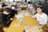 子供たちは、事前に描いた設計図をもとに、木材をノコギリで切ったり、釘を打ったりボンドで貼ったりしながら、思い思いに作品作りをしていました。