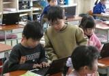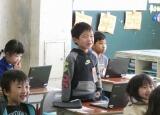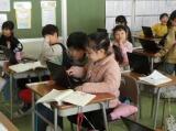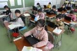 後半はタブレットパソコンを使い、4つの言葉をつないで文を作って、それを発表しました。
