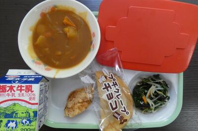 今日は、中村中学校リクエスト給食でした。とりのから揚げ、磯辺あえ、ポークカレー、チョコクレープ、ごはん、牛乳をいただきました。エネルギー732kcal、たんぱく質24.7g、脂質23.5gでした。ごちそうさまでした。
