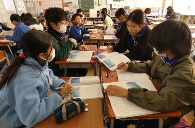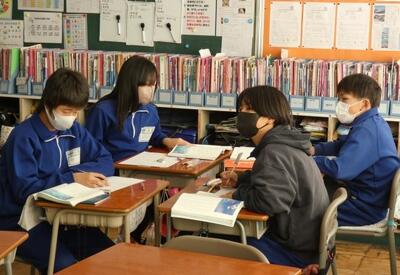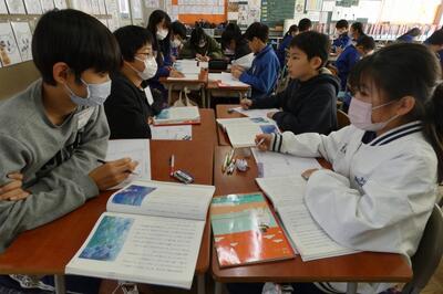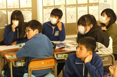 現在6年生は、宇都宮市出身の小説家 立松和平氏が書いた物語「海の命」を読んでいます。この時間は、主人公「太一」が弟子入りする漁師「与吉じいさ」の人物像について考えていました。