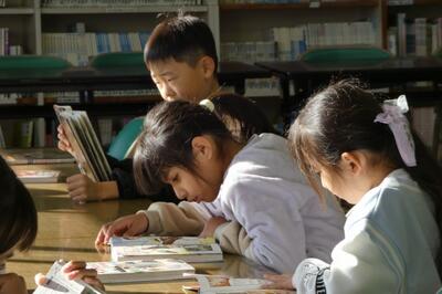 2学期も最終週を迎えました。3年2組の児童が、冬休みに読む本を借りるために、図書室にやってきました。その様子をこっそりお伝えします。