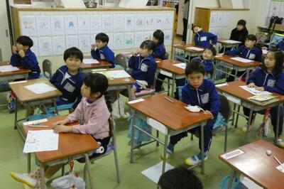 1年3組の国語科の授業におジャマしました。ひらがな「へ」「り」について学んでいました。