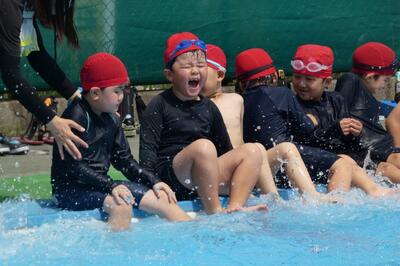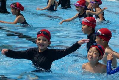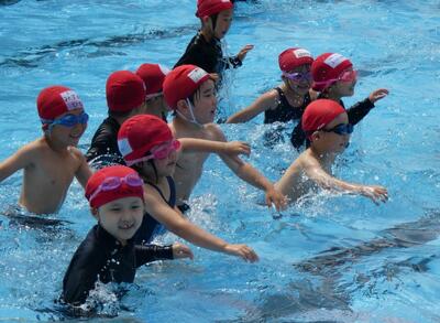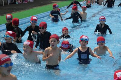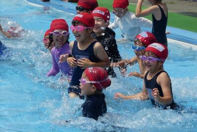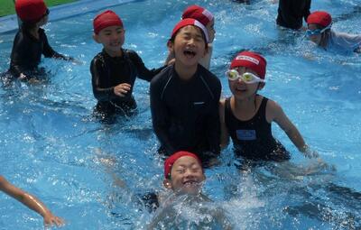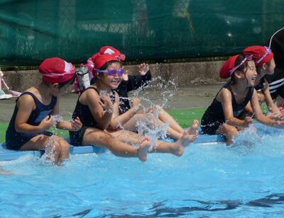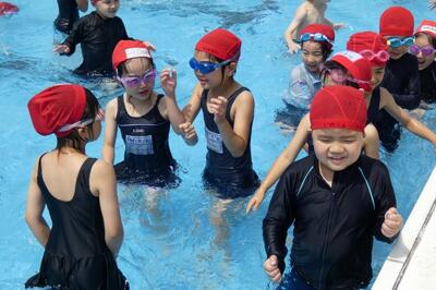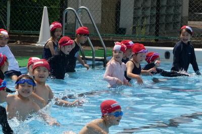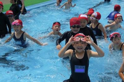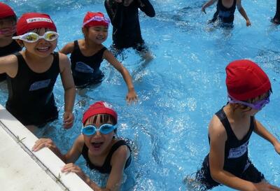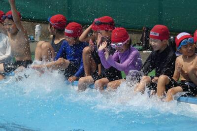 保護者の皆様、水着やタオル、サンダルなどの準備をありがとうございました。移動中の落とし物もありましたが、おうちの方に持ち物へ記名していただいたお陰で、トラブルなくすぐに持ち主の元へ戻っていました。