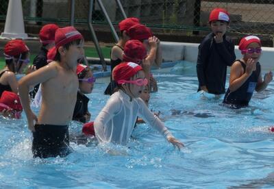 1年生が初めて小学校のプールで水泳学習を行いました。その様子をお伝えします。
