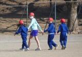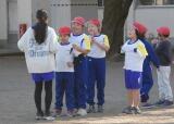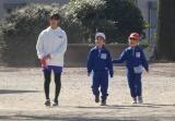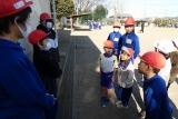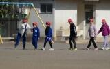 1年生が、6年生のお兄さんお姉さんに連れられて校庭に集まってきました。