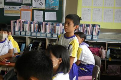 6年生の教室で租税教室が行われています。今日行われた6年3組の様子をご覧ください。