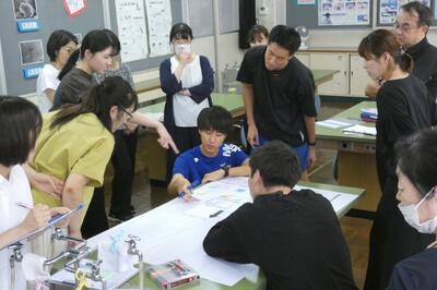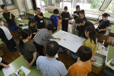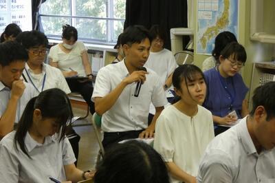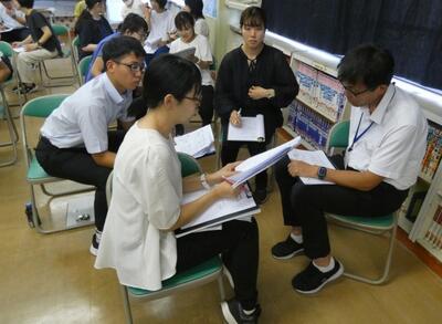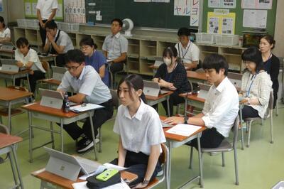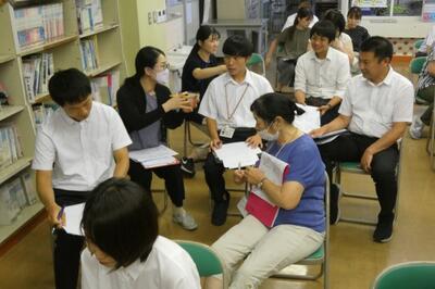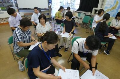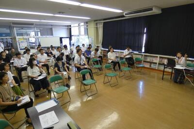 近くの人と意見を交換するワイワイタイム。子供たちの授業と同じですね。先生たちも頑張っています!