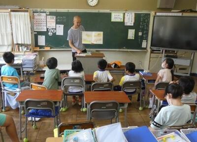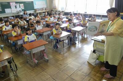 今朝は「おはなしの会 くれよん」の皆様による読み聞かせがありました。