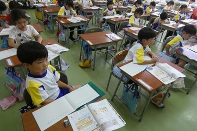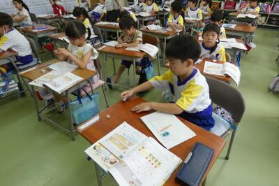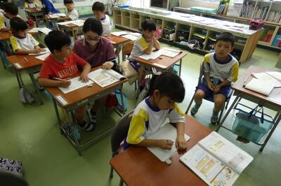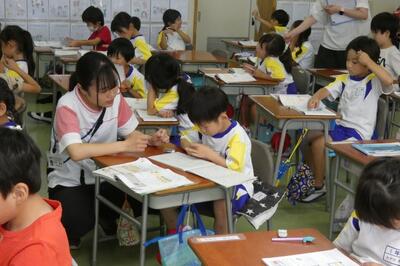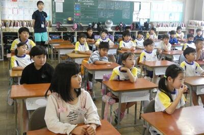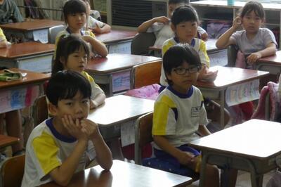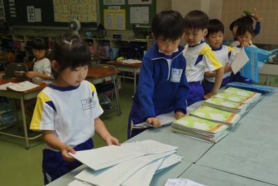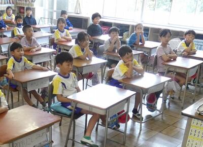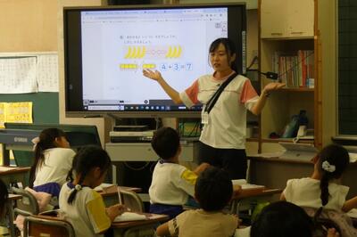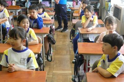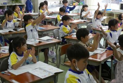 子供たちは先生と一緒に、両手を広げて「あわせて」を動作化していました。