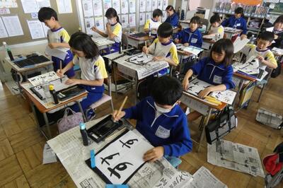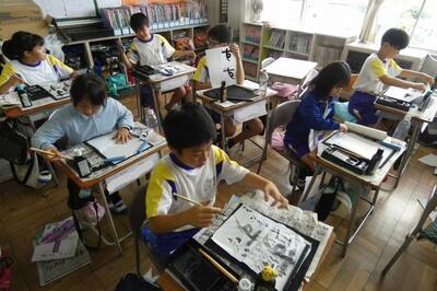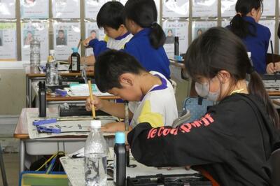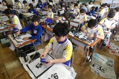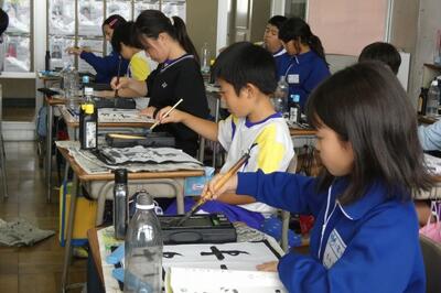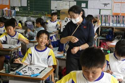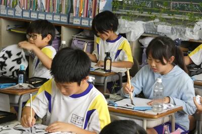 子供たちは、点画のつながりを意識することと、「す」や「な」に含まれる筆使い(むすび)に注意して練習をしていました。