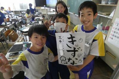 書写の時間です。この時間は、平仮名で「きずな」を練習しました。