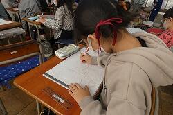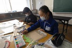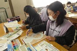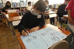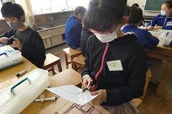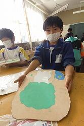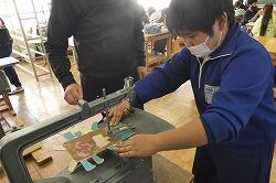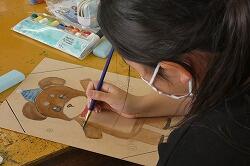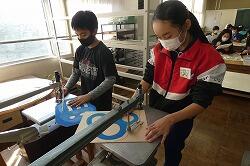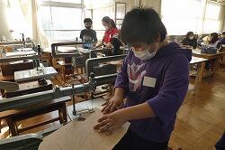 5年生の図工では糸のこを使って、板を切り抜いています。