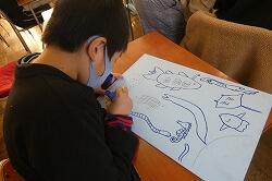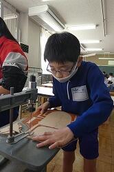 白いのはホワイトボードです。糸のこを使って、オリジナルの掲示板を作っているのです。できあがりが楽しみな5年生でした。