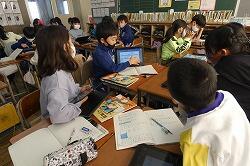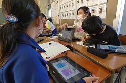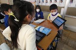 次に、グループになり、自分の考えをタブレットを使って伝えます。その際、タブレットを相手が見やすいように提示していました。