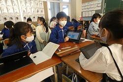 自分の考えをタブレットを使って伝えます(3年・算数)